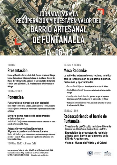 Os informamos que el próximo viernes 14 de junio, la Universidad de Málaga organiza una Jornada para la recuperación y puesta en valor del barrio artesanal de Funtanalla, que como sabréis es el barrio donde está ubicado el museo.