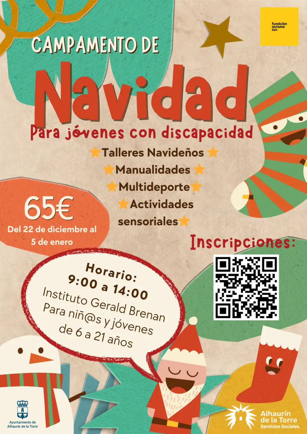 El campamento se desarrollará del 22 de diciembre al 5 de enero, en horario de 9:00 a 14:00 horas, y tendrá como sede el Instituto Gerald Brenan. Está dirigido a niños, niñas y jóvenes de entre 6 y 21 años, ofreciendo un espacio seguro y adaptado donde disfrutar de la Navidad a través del ocio educativo.