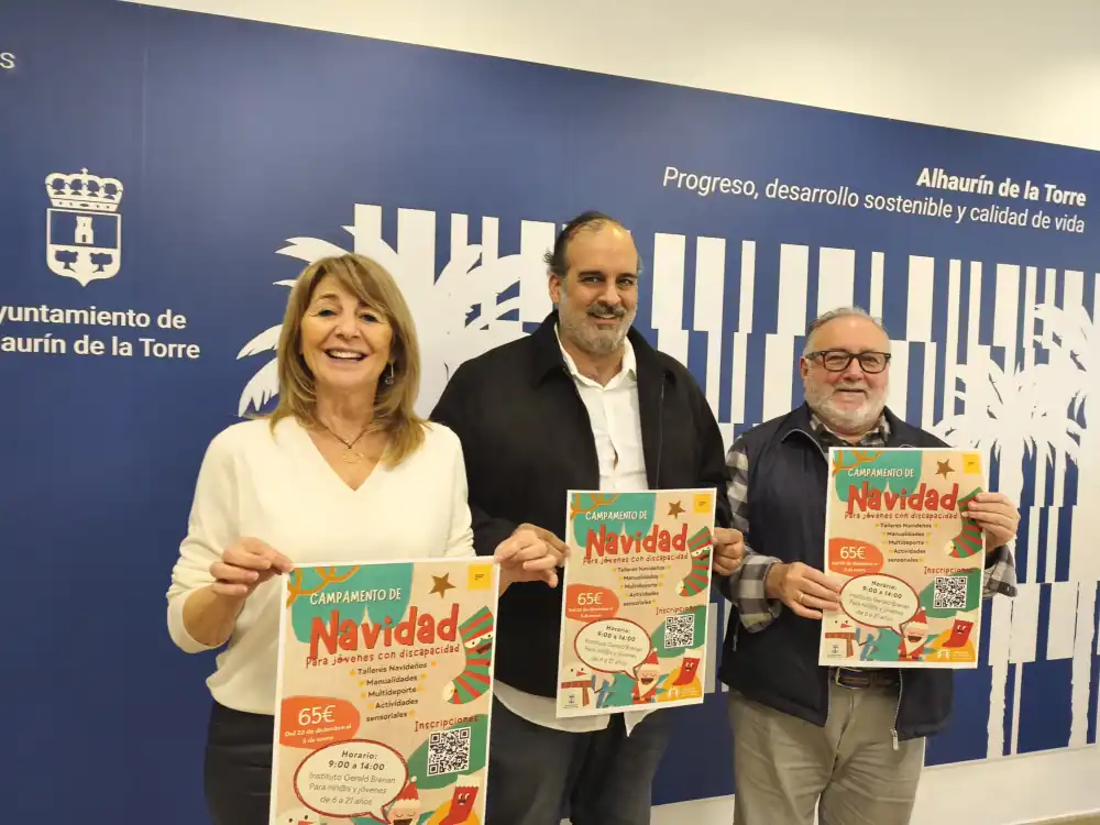 Alhaurín de la Torre vuelve a apostar esta Navidad por la inclusión y la conciliación familiar con la puesta en marcha del Campamento de Navidad para jóvenes con discapacidad, una iniciativa impulsada por el Área de Asuntos Sociales del Ayuntamiento en colaboración con la Fundación Autismo Sur. La actividad ha sido presentada por el alcalde, Joaquín Villanova; la concejala delegada, María del Carmen Molina, y el director gerente de la citada fundación, Norberto Nieto.