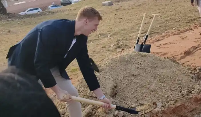 El capitán del Unicaja, vecino del municipio, estrella en el simbólico acto de inicio de las obras del futuro pabellón cubierto, al que también han asistido el alcalde, el presidente de la Diputación, la delegada del Gobierno andaluz y numerosos jóvenes de los clubes locales de baloncesto