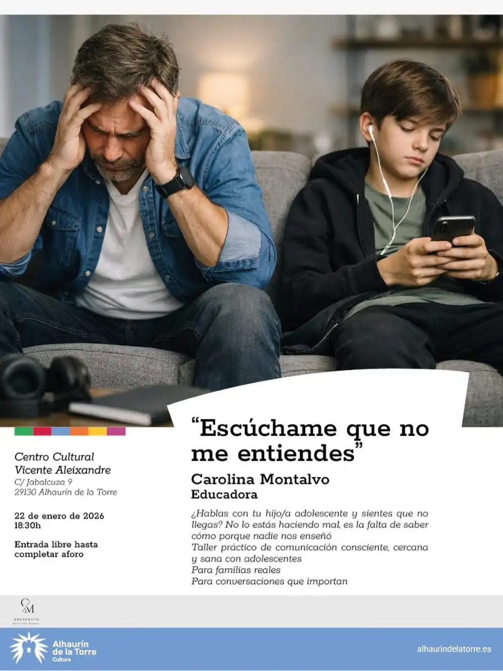 La cita tendrá lugar este próximo jueves, 22 de enero, a las 18.30 horas en el Centro Cultural ‘Vicente Aleixandre’, con entrada gratuita hasta completar aforo. Lleva por título ‘Escúchame… que no me entiendes’ y lo imparte la educadora Carolina Montalvo