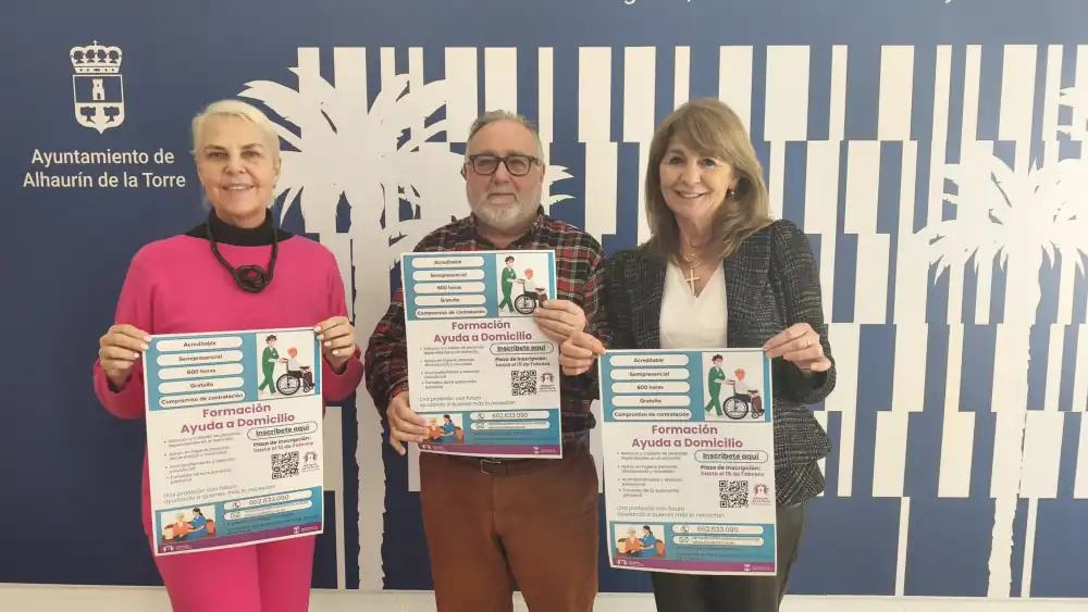 El alcalde de Alhaurín de la Torre, Joaquín Villanova, y la concejala de Asuntos Sociales e Igualdad, María del Carmen Molina, han presentado un nuevo programa de formación de ayuda a domicilio, cuyo plazo de inscripciones ya se encuentra abierto hasta el 15 de febrero. La edil delegada del área ha explicado que se busca formar a personas en una “profesión con futuro” y para la que existe una importante demanda de empleo.