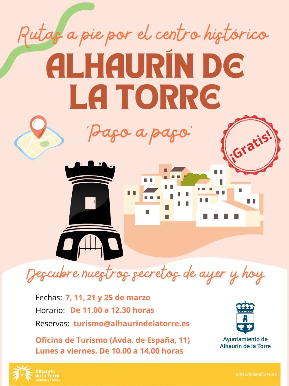 El Área de Turismo presenta esta nueva iniciativa, que se desarrollará a lo largo del mes de marzo con un total de cuatro ‘free tours’ para conocer mejor los principales rincones del casco antiguo y la historia local. Más información y reservas: turismo@alhaurindelatorre.es