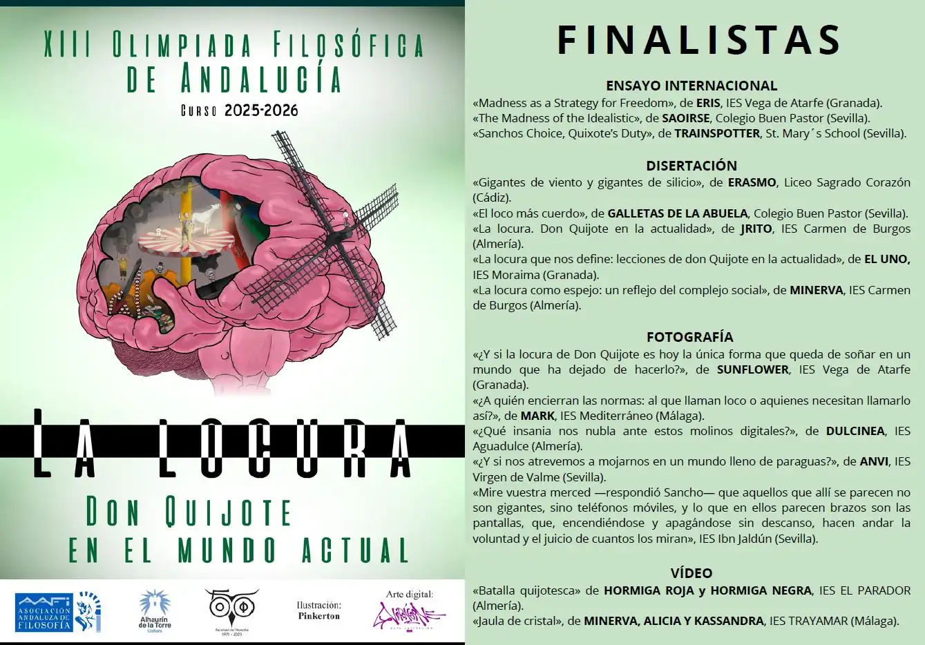 La cita es este sábado, 7 de marzo, en la Biblioteca Municipal ‘Antonio Garrido Moraga’. Estudiantes de bachillerato de toda la comunidad participan en esta 13ª edición, que tiene por lema ‘La locura de Don Quijote en el mundo actual’. Organiza: Asociación Andaluza de Filosofía