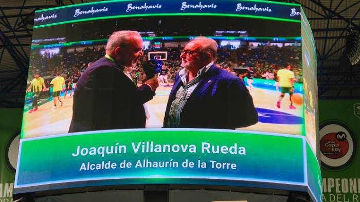 El alcalde, Joaquín Villanova, fue entrevistado a pie de pista, en los minutos previos al comienzo del encuentro, por el speaker oficial del Unicaja, Federico de Palma, mientras que en el videomarcador se podían ver fotografías de rincones y eventos significativos de Alhaurín de la Torre.