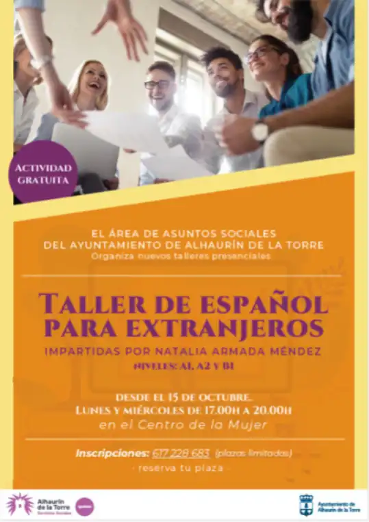 El Área de Servicios Sociales Especializados, dependiente de la Concejalía de Bienestar Social, Igualdad y Familias de Alhaurín de la Torre, ha organizado, por cuarto año consecutivo, el taller de Español para Extranjeros, que tiene por objetivo la integración de las personas migrantes que residen en nuestra localidad. Este curso es de carácter totalmente gratuito, comienza hoy mismo, 15 de octubre y las clases se impartirán de cinco a ocho de la tarde en el Centro Municipal de Información a la Mujer (CMIM), a la espalda del Ayuntamiento. El taller, cada año, goza de mayor aceptación, con un creciente número de alumnos y alumnas de distintas nacionalidades de origen.