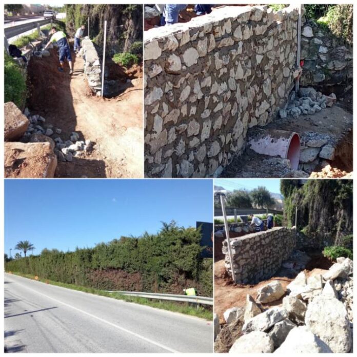 Los Servicios Operativos han iniciado las obras para extender unos cien metros la acera norte a la altura de la Finca Solvana, con el...