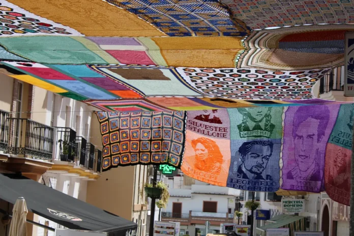 La instalación en calle Ermita, fue una novedad del año pasado, con la instalación de paraguas revestidos de crochet. Este año, con idea de aprovechar ese crochet, se han unido todas las piezas, creando toldos muy creativos que se instalarán en esa calle.