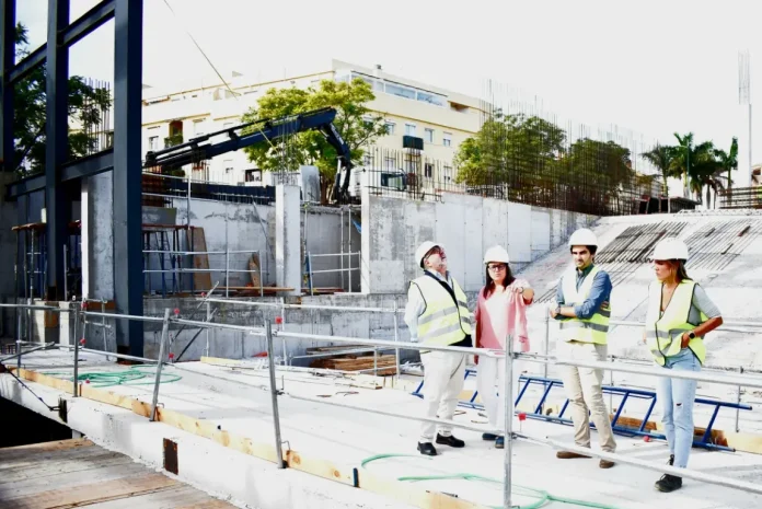 Está próximo a cumplirse un año desde el comienzo de la construcción del futuro Teatro de Alhaurín de la Torre y, por tal motivo, el alcalde, Joaquín Villanova, ha girado visita a las obras, acompañado del equipo técnico de Urbanismo y de la empresa constructora. El regidor ha asegurado que será uno de los “edificios emblemáticos de nuestro municipio”, tanto por sus calidades y equipamiento como por el contenido cultural que albergará, al nivel de una gran ciudad.