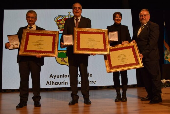 El Salón de Actos de la Casa de la Juventud ha acogido este noche de sábado la solemne ceremonia de entrega del título de Hijos Adoptivos de Alhaurín de la Torre del empresario Antonio Vázquez Olmedo y los fundadores del Museo Andaluz de la Educación (MAE), José Antonio Mañas y Jesús Asensi (este último, a título póstumo). Dichos galardones fueron aprobados por unanimidad por el Pleno de la Corporación Municipal el pasado mes de diciembre, y se han materializado en el acto oficial que se ha llevado a cabo hoy. En la gala, presentada por el funcionario Manuel Guerado, se ha procedido a la lectura del acta de aprobación del nombramiento de cada uno: el concejal de Patrimonio Histórico-Artístico y responsable institucional del MAE, Manuel López, ha leído el de Mañas y Asensi, mientras que el edil de Seguridad Ciudadana y Movilidad, Pablo Montesinos, se ha encargado del documento acreditativo del nombramiento de Antonio Vázquez Olmedo.