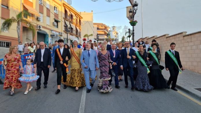 A continuación, comenzó el clásico ‘paseillo’ desde la plaza hasta el Parque Ferial. La comitiva atravesó la calle Mirador de Bellavista (bajada del parque), que también se ha cerrado al tráfico este año para la instalación de varios puestos, hasta llegar al arco principal de la entrada, donde tuvo lugar el tradicional corte de cinta y encendido del alumbrado. El regidor quiso recorrer las casetas de cofradías, hermandades y colectivos para saludar a organizadores y felicitarles por su colaboración y su trabajo, indispensables para que las fiestas sean todo un éxito.