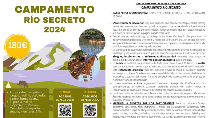 Juventud organiza un campamento de verano en el parque multiaventuras Río Secreto