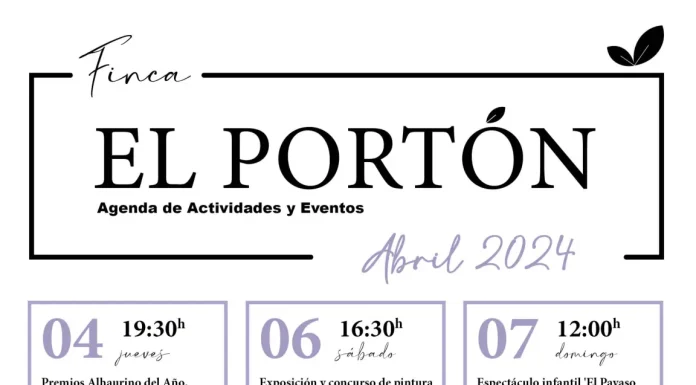 Aquí tienes un resumen de la agenda cultural de La Finca El Portón de Alhaurín de la Torre para el mes de abril: