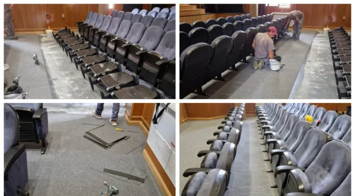 Los Servicios Operativos del Ayuntamiento coordinan estos trabajos para modernizar el escenario del salón de actos, dándole un aspecto de caja negra, y renovar...