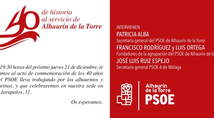 El próximo 21 de diciembre el PSOE de Alhaurín de la Torre cumplirá su 40 aniversario en nuestra localidad, 40 años en la casa...