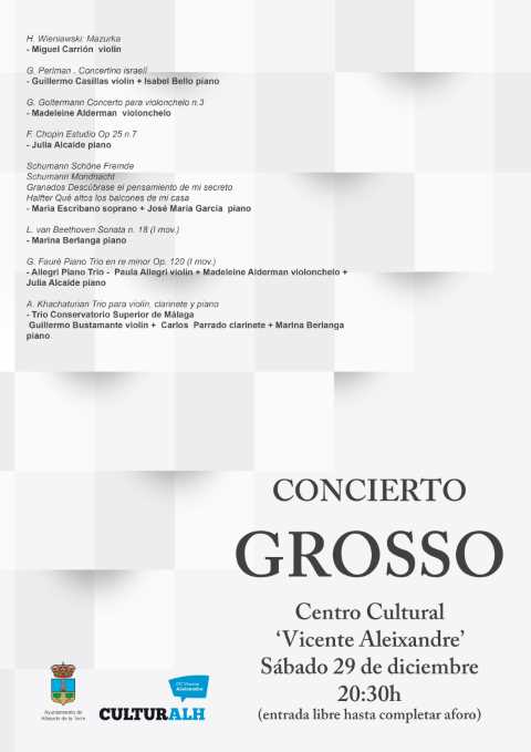 Concierto de Jóvenes Intérpretes que se celebrará el próximo 29 de diciembre en el Centro Cultural «Vicente Aleixandre» a las 20:30 horas.