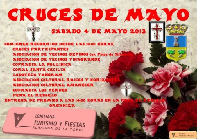Como cada año, Alhaurín de la Torre celebrara la tradicional Fiesta de las Cruces de Mayo, donde Asociaciones y colectivos locales optan a los premios clasificatorios por finalistas locales y provinciales convocado por la Federación de Peñas Malagueña.
