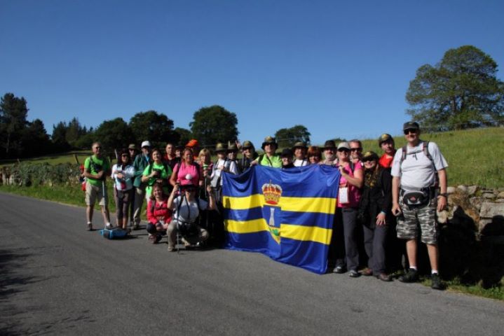 3ª Etapa: Portomarín-Palas de Rei.- El madrugar para cumplir con los tiempos y distancias es elemental, toda vez que hay que retroceder unos 100 kms hasta Portomarín para comenzar la etapa. En esta, nuestro ecuador, encontramos gran número de peregrinos, muchos más que en los días anteriores. El paisaje es distinto, más monótono, alternando asfalto con tierra, menos arbolado, más llana, aunque seguimos en la Galicia profunda. Hacemos las necesarias paradas para tomar aliento y alimento y aunque el kilometraje se va notando en nuestras piernas, intentamos paliar los inconvenientes físicos charlando tanto con los compañeros como con algún lugareño que amablemente se presta a darnos converesación y nos invita a probar sus exquisitos quesos recién hechos por las manos de su esposa. Llegamos con buen ritmo de marcha a Palas de Rei sobre las 14,30 h. Tomamos posesión de una mesa en un restaurante, menú al canto, y preparados para acercarnos a Lugo capital, con tiempo para hacer un pequeño recorrido por su famosa muralla del siglo III (patrimonio de la humanidad), visitar la Catedral, alguna de las calles del centro histórico y tomar un café. Regresamos al hotel, darnos un buen baño y degustar y copiosa cena. Durante la misma, sorprendemos a nuestra compañera María con una magnífica tarta por su cumpleaños, que con gran alborozo y alegría la homenajeada supo corresponder. Poco a poco vamos abandonando el salón para retirarnos a descansar.