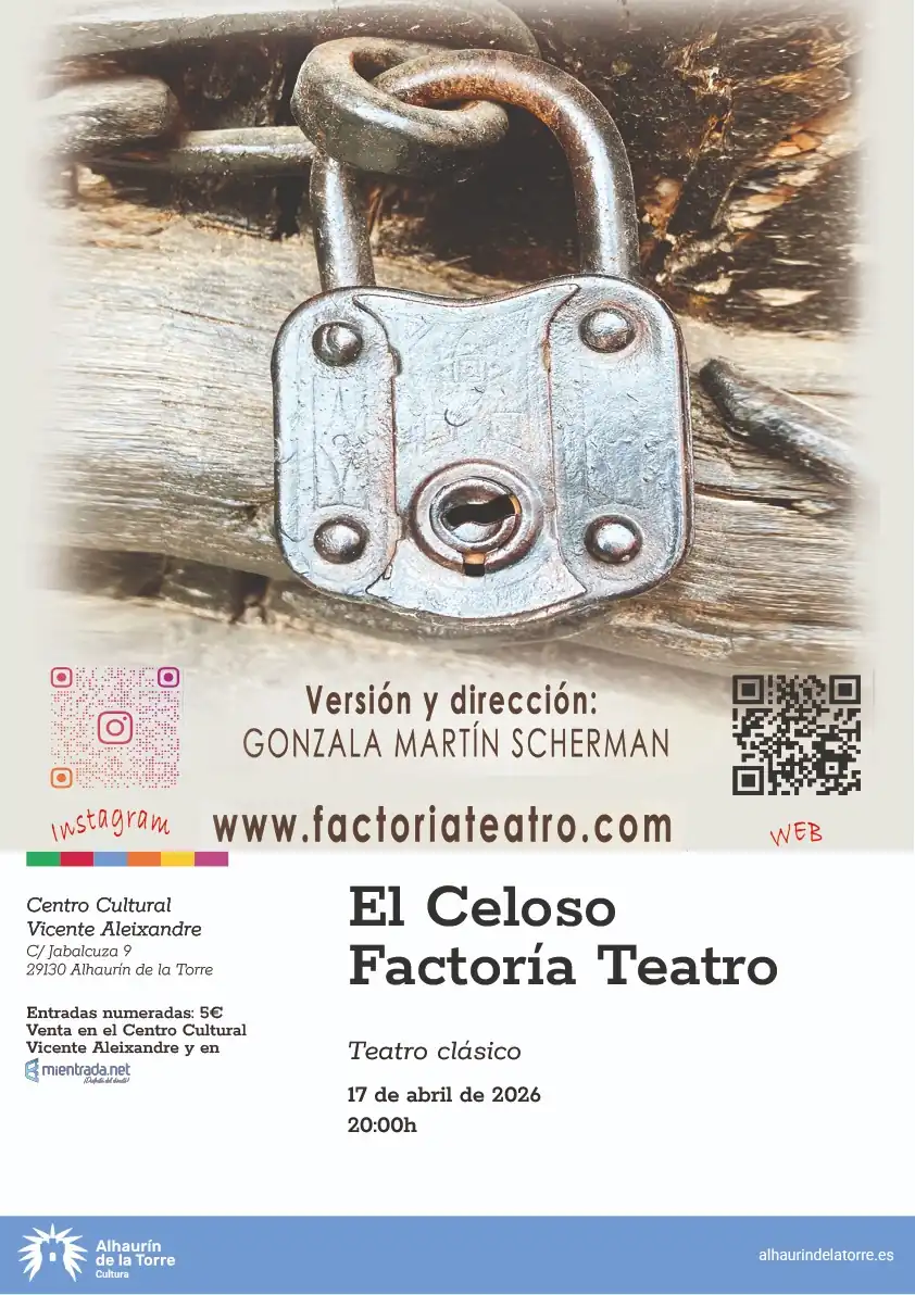 El Área de Cultura que dirige el edil Manuel López ha programado para el próximo viernes, 17 de abril, una nueva velada de teatro en el Centro Cultural ‘Vicente Aleixandre’ con la obra ‘El celoso’, a cargo de la compañía Factoría Teatro. La función comienza a las ocho de la tarde y las entradas numeradas para presenciar el evento están ya a la venta al precio de cinco euros en la ticketera www.mientrada.net y en el mismo Centro Cultural en su horario habitual de apertura.