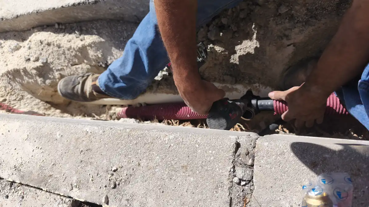 Los trabajos, a cargo de los Servicios Operativos, se desarrollan en la avenida Cristóbal Colón, a la altura del Estadio de Los Manantiales, donde se instalan nuevas conducciones que conectarán directamente con el aljibe que se ha construido en la Finca San Francisco