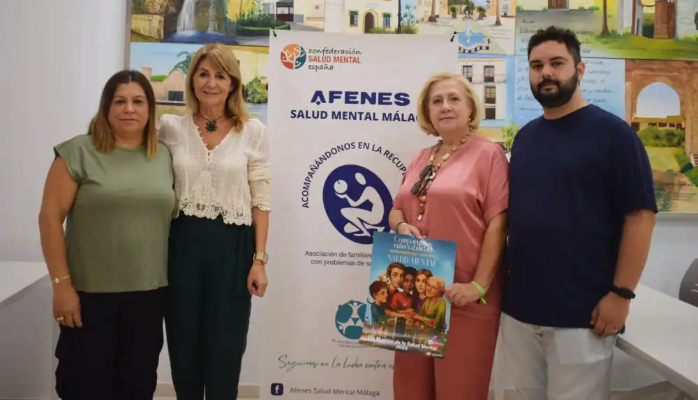 Hoy, 10 de octubre, se conmemora el Día Mundial de la Salud Mental y, por esa razón, el Ayuntamiento de Alhaurín de la Torre se ha unido a las reivindicaciones que los colectivos efectúan para mejorar la atención y visibilidad social de las personas con enfermedades relacionadas. En concreto, la concejala de Bienestar Social y Familias, María del Carmen Molina, ha recibido a la presidenta de AFENES Málaga y vicepresidenta regional, Carmen Sibaja, y a un grupo de colaboradores del colectivo, y ha apoyado el manifiesto alusivo a esta fecha, que lleva por lema en 2025: ‘Compartimos vulnerabilidad, defendamos nuestra salud mental’ a nivel de toda España.