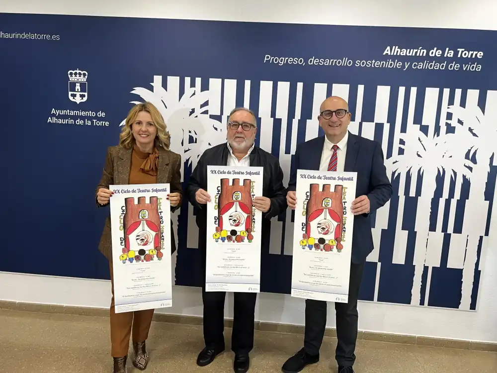 Alhaurín de la Torre retoma el próximo mes su tradicional Ciclo de Teatro Infantil, que con esta sumará ya 20 ediciones, consolidado como uno de los programas enfocados al público infantil con más arraigo de la provincia. El alcalde, Joaquín Villanova, junto al concejal de Cultura, Manuel López, y la técnica, Antonia Cordero, presentaron el cartel y las obras protagonistas este año.