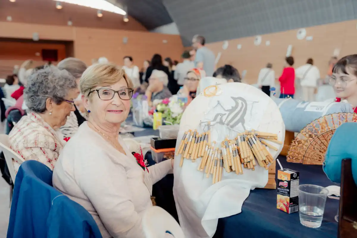 Durante toda la mañana, las encajeras han trabajado en sus mesas elaborando piezas de bolillos y mostrando sus creaciones al público, en un ambiente en el que no han faltado la música, la comida y el intercambio de experiencias entre las participantes.