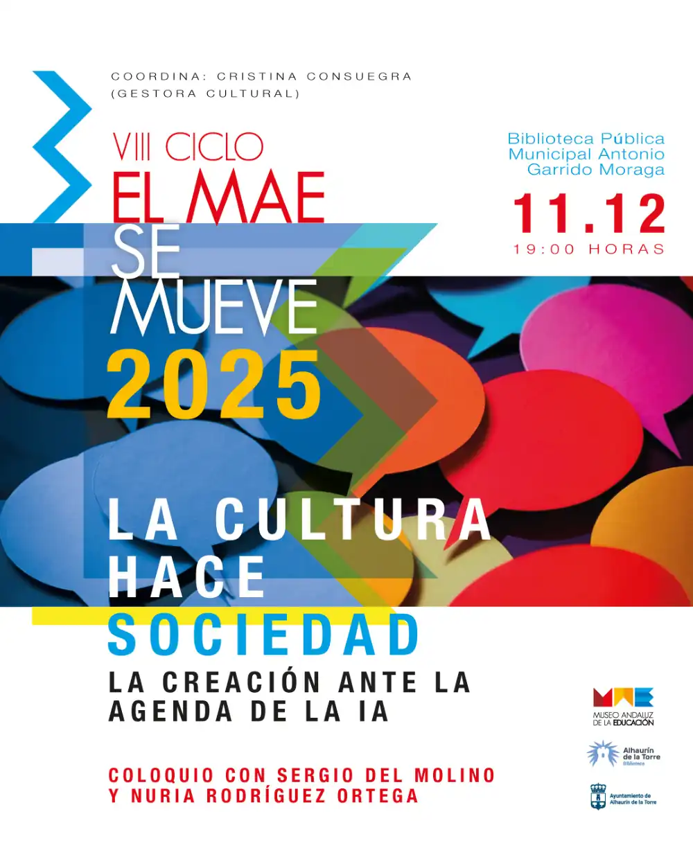 El ciclo de pensamiento contemporáneo ‘El MAE se mueve’, organizado por el Museo Andaluz de la Educación del Ayuntamiento de Alhaurín de la Torre, celebrará el próximo 11 de diciembre su sesión de clausura, poniendo fin a una edición marcada por el lema «La cultura hace sociedad». Esta entrega ha contado con la participación de figuras relevantes como Sergio Vila-Sanjuán, José Lebrero, Juan Antonio Vigar, Luz Arcas y Alberto Conejero.