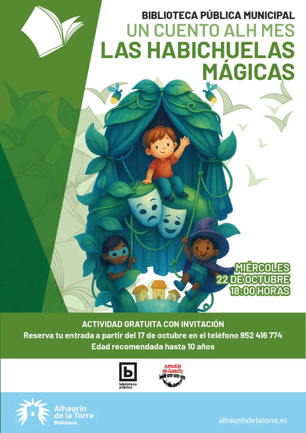 En esta ocasión se representará ‘Las habichuelas mágicas’, una versión del clásico infantil a cargo nuevamente de la compañía Andén Mágico. Está recomendada para niños y niñas de hasta los 10 años de edad. Cabe recordar que esta actividad goza de una importante demanda entre las familias, por lo que se aconseja reservar la plaza porque suelen agotarse. El número de teléfono es el 952 416 774.