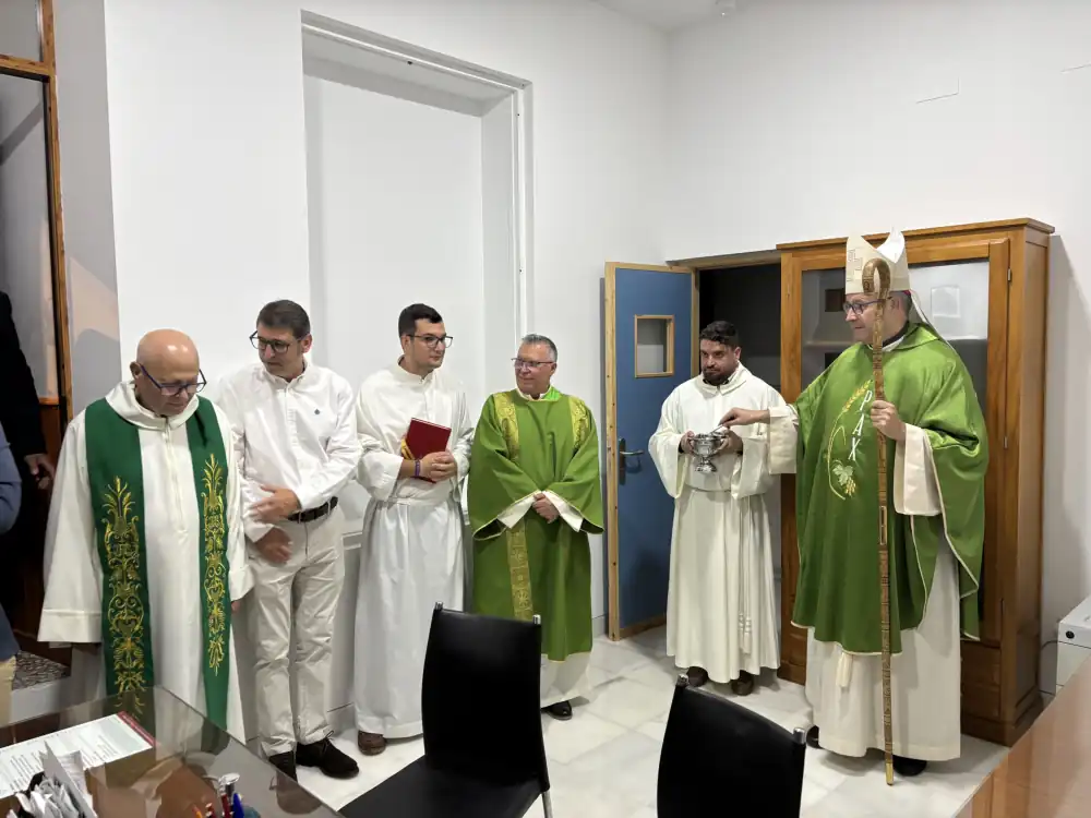 A continuación, el obispo y toda la comitiva se han dirigido a los salones parroquiales que han sido bendecidos por Satué tras la importante obra de reforma, mejora y ampliación que ha sufrido en los últimos meses desde el pasado febrero y que también ha afectado a la sacristía del templo, uno de los lugares por donde se unen la Parroquia y estos salones. Las obras han permitido que se pase de seis a siete salones que ahora son más espaciosos, luminosos y adaptados a los nuevos tiempos con una mejora tecnológica y nuevo mobiliario con acceso a internet y televisión para apoyar la impartición de las catequesis.