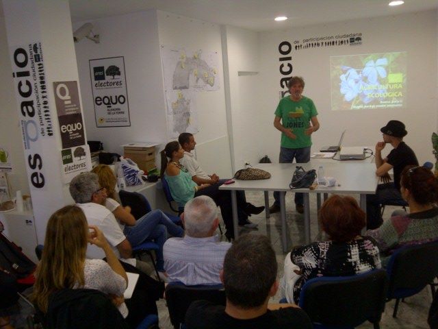 Una veintena de asistentes, entre los que se encontraban productores y agricultores locales, y un porcentaje importante de jóvenes participaron en el Taller sobre Agricultura Ecológica ofrecido en el espacio de Participación de ELECTORES.