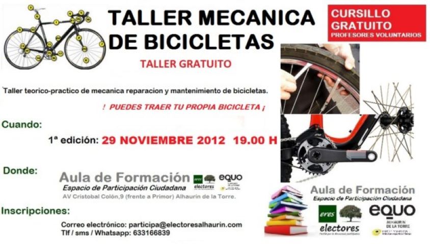 Impartido por un profesional voluntario, que orientará tanto teórica como prácticamente, a los asistentes en el mantenimiento y reparación de todo tipo de bicicletas, siendo posible que los alumnos acudan con sus propias bicicletas.