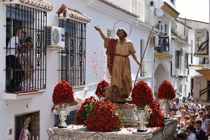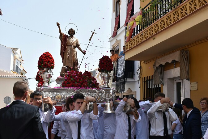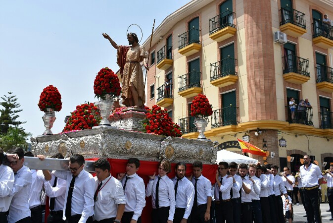 Y pasadas las once de la mañana, a hombros de portadores adultos y menores de edad que han decidido participar con una autorización previa por parte de sus padres, el Santo ha salido de la Iglesia para comenzar su recorrido procesional. En las calles, una lluvia de pétalos lanzados desde los balcones le esperaba bajo el fervor de cientos de vecinos y vecinas que le han acompañado a lo largo de todo el itinerario hasta volver a su templo.