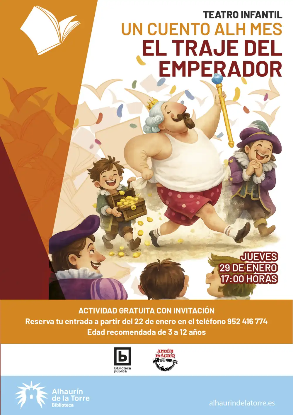 La Biblioteca reanuda el ciclo de animación a la lectura para el público infantil con el espectáculo ‘El traje del emperador’, a cargo de Andén Mágico, previsto para el 29 de enero a las cinco de la tarde