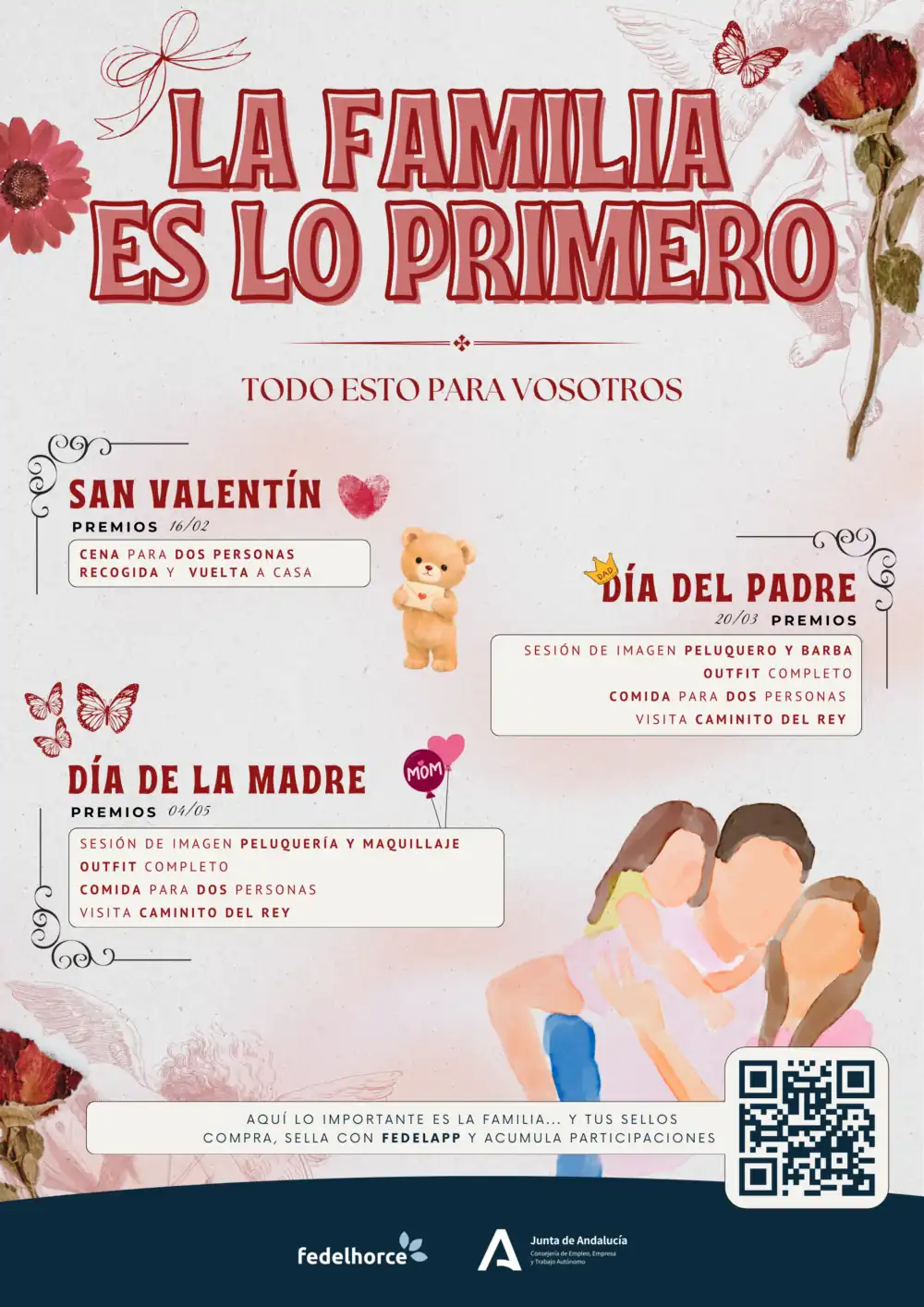 Las tras líneas de premios a los que optan son: una cena para dos personas con recogida y vuelta a casa en microbús por San Valentín; una sesión de imagen con peluquero y barba, un outfit de ropa completo, una comida para dos personas y una visita al Caminito del Rey; y el mismo obsequio, pero con sesión de imagen de peluquería y maquillaje para el Día de la Madre.