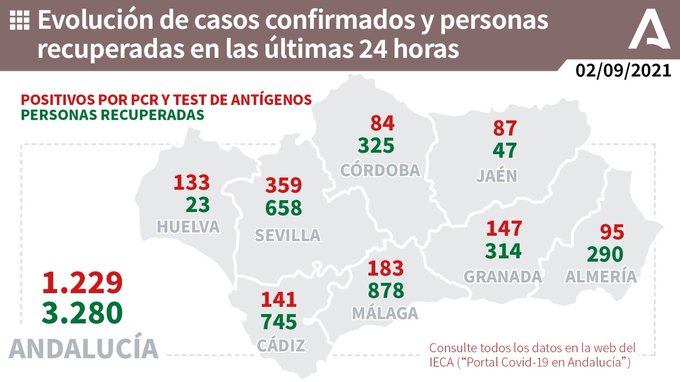 Actualización de datos Covid-19. Vacunas administradas en Andalucía a 1 de septiembre:
