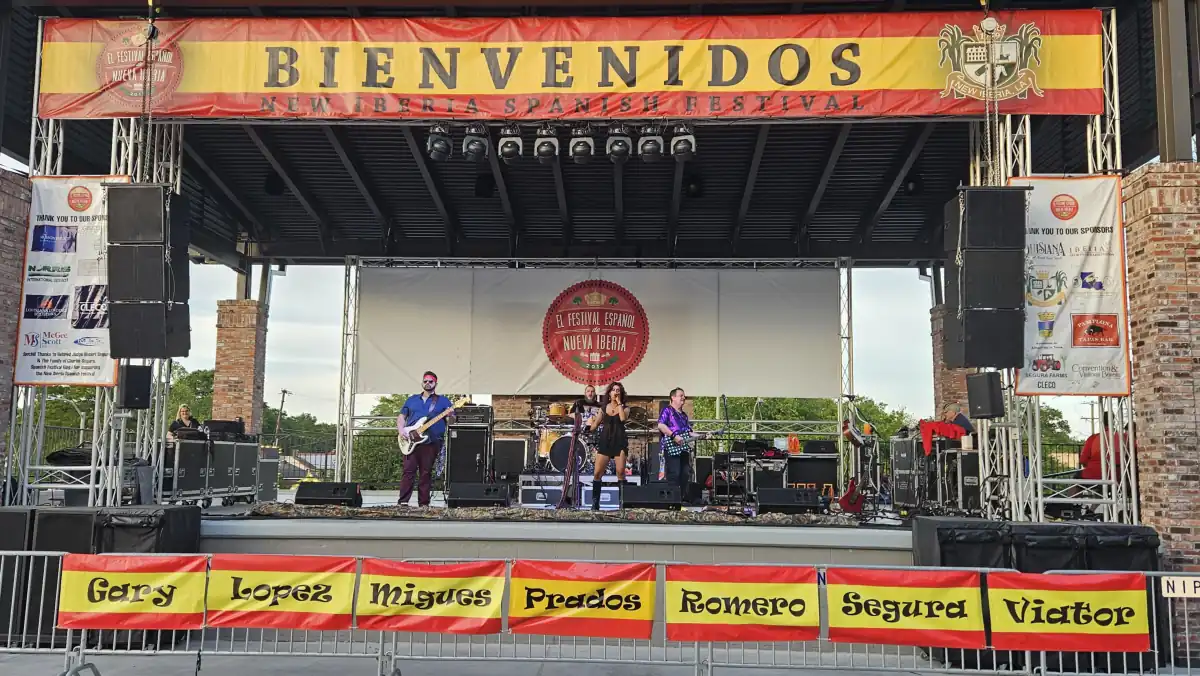 Por la tarde fue la inauguración del recinto dedicado al Festival Español de Nueva Iberia, con el izado de banderas y actuaciones musicales, que hoy sábado presenta el cartel anunciador, entre otras actividades, con la presencia del gobernador de Luisiana, Jeff Landry.