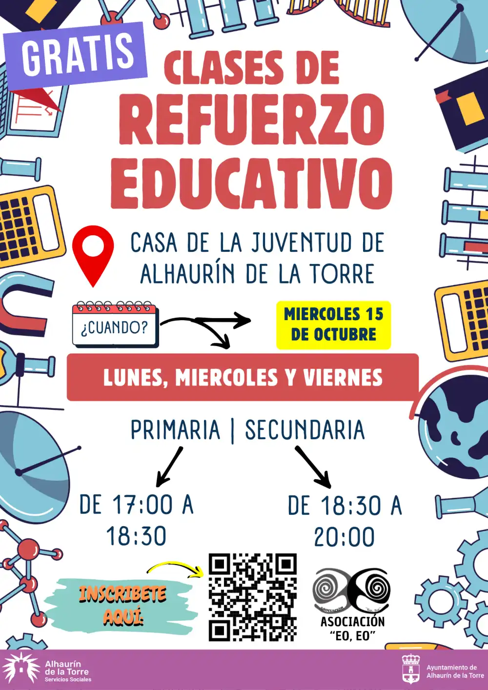 La Asociación Eo, Eo de Alhaurín de la Torre volverá a poner en marcha su programa de apoyo y refuerzo escolar a partir del martes 15 de octubre, dirigido a estudiantes de Primaria y Secundaria. Las sesiones se celebrarán en las salas de formación de la Casa de la Juventud y serán totalmente gratuitas para las familias.