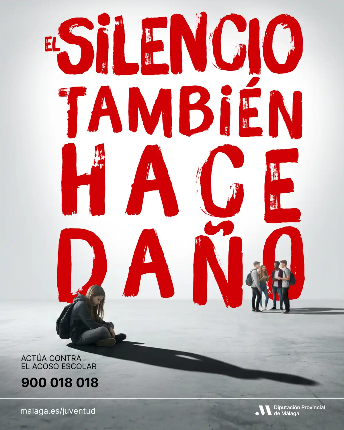La Diputación de Málaga ha puesto en marcha una potente campaña de sensibilización y prevención con motivo del Día Internacional contra el Acoso Escolar, que se conmemora el próximo 2 de mayo. La campaña cuenta con varias iniciativas que llegarán a las aulas y a los espacios públicos de la provincia bajo el título ‘El silencio también hace daño’.