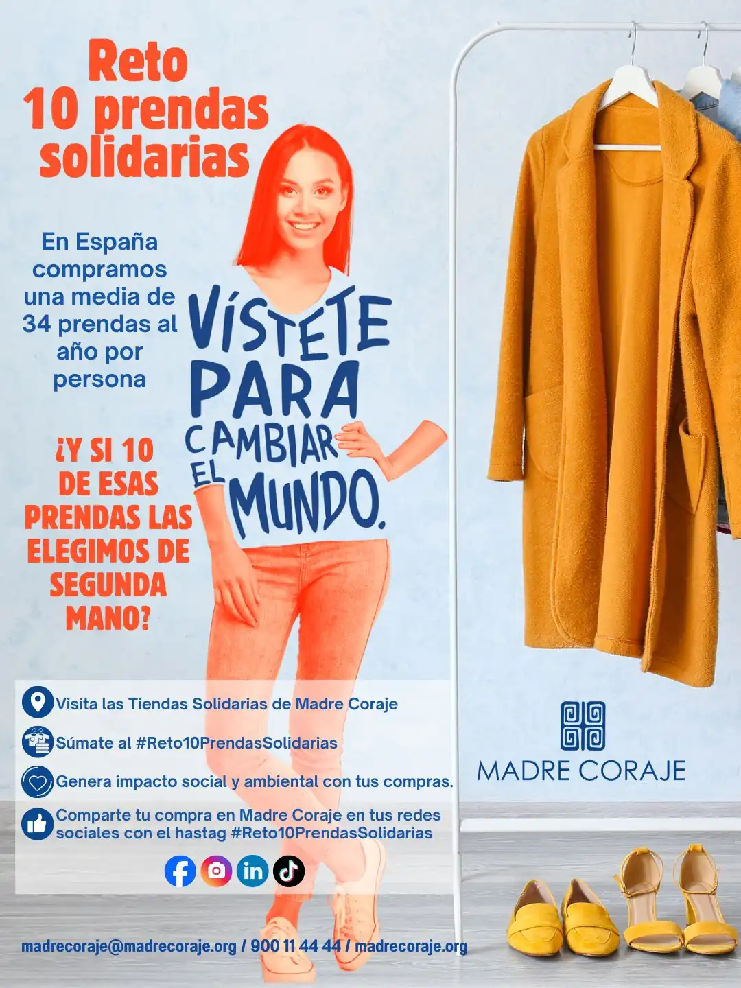 La Fundación anima a quienes participen en el reto a mostrar sus compras solidarias en redes sociales publicando fotos o vídeos de sus prendas adquiridas en las tiendas de la entidad en TikTok, Instagram o Facebook, mencionando a Madre Coraje y utilizando el hashtag #Reto10PrendasSolidarias para dar visibilidad al reto e inspirar a amistades y seguidores a sumarse a un consumo más responsable.