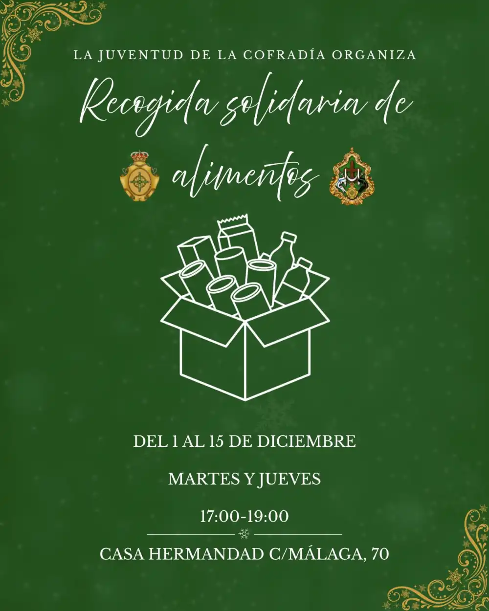La recogida se desarrollará del 1 al 15 de diciembre en la Casa Hermandad de los Verdes, ubicada en calle Málaga, número 70, donde se recibirán las aportaciones los martes y jueves en horario de 17:00 a 19:00 horas.