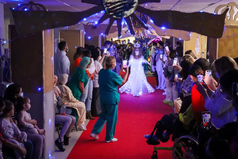 El acto ha comenzado con la presentación y animación a cargo del profesor del Colegio Divino Pastor Miguel Ángel García, quien ha generado un ambiente festivo y de expectación entre los asistentes. A continuación, el director gerente del hospital, junto a Paula, paciente oncohematológica, ha pulsado el botón que ha dado inicio al primer pase de luces y música. Asimismo, la figura de “El ángel de la Navidad”, interpretada por Isis, ha sido otra de las atracciones destacadas para los menores.