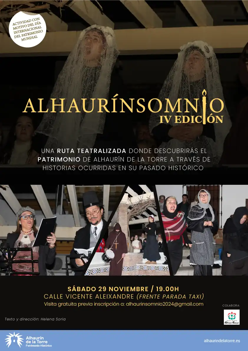 La ruta teatralizada ‘Alhaurinsomnio’, que representa historias y leyendas relacionadas con el Alhaurín de la Torre del siglo XIX, volverá a celebrarse el próximo 29 de noviembre, sábado, por las calles del Barrio Viejo de la localidad, con el objetivo de dar a conocer el patrimonio del municipio. La salida se ha programado para las siete de la tarde, desde la avenida Vicente Aleixandre, junto a la parada de taxis, para adentrarse en las estrechas calles del Barrio Viejo. En ese entorno se van a recrear pasajes de historias reales y leyendas, particularmente relacionadas con misterios y hechos curiosos acaecidos en el municipio, gracias a la caracterización de los personajes y la ambientación de época en la zona, que juegan un papel fundamental en la trama.