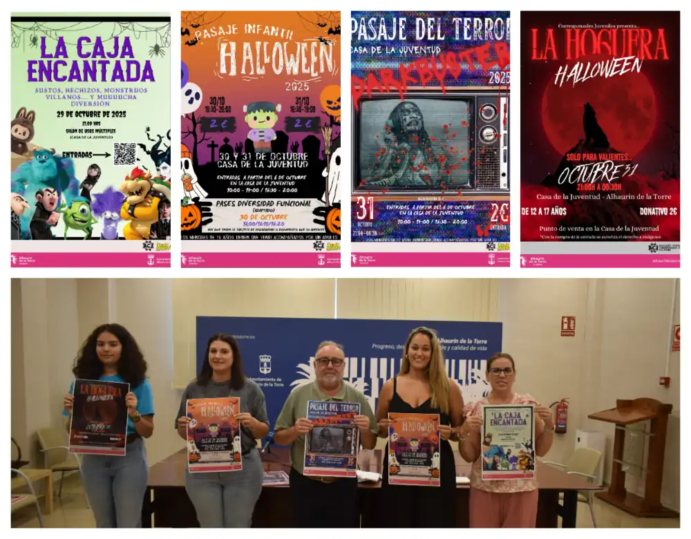 La Concejalía de Juventud del Ayuntamiento de Alhaurín de la Torre ha presentado este lunes el programa de actividades correspondientes a Halloween 2025. Las fiestas, que cada año cuentan con más seguidores de todas las edades, se celebrarán los días 29, 30 y 31 de octubre en las instalaciones de la Casa de la Juventud. La presentación ha corrido a cargo del alcalde, Joaquín Villanova, la concejala del Área, Iraya Villalba, junto con su equipo técnico y representantes de la Asociación Corresponsales Juveniles, colaboradora del evento.