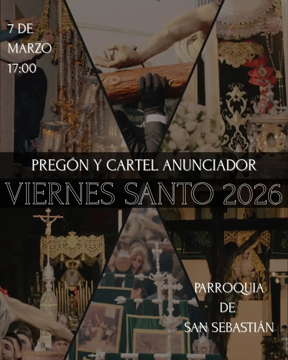El acto, con Diego Daniel Cortés como pregonero, tendrá lugar a partir de las cinco de la tarde en la Iglesia de San Sebastián. Se presentará también el cartel anunciador encargado por la cofradía, obra del pintor malagueño Pablo Cortés del Pueblo