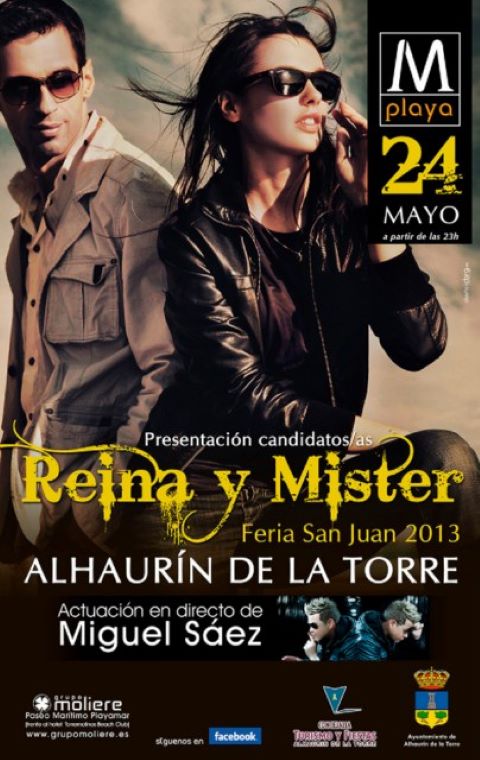 La Concejalía de Fiestas y Turismo del Ayuntamiento de Alhaurín de la Torre ha organizado por segundo año consecutivo una Pregala de la Reina y el Míster de la Feria de San Juan Bautista con el objetivo de promocionar nuestros festejos en la Costa del Sol. El evento volverá a tener lugar en el establecimiento Moliere Playa de Torremolinos, donde desfilarán los candidatos y candidatas al concurso que se celebrará el 21 de junio en la caseta municipal.
