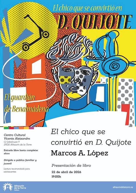El próximo 22 de abril a las 19:00 horas, el Centro Cultural ‘Vicente Aleixandre’ se sumará a la celebración del Día del Libro con un encuentro literario dirigido al público juvenil y familiar. El protagonista de la jornada será el escritor Marcos A. López, quien presentará su novela ‘El chico que se convirtió en D. Quijote’.