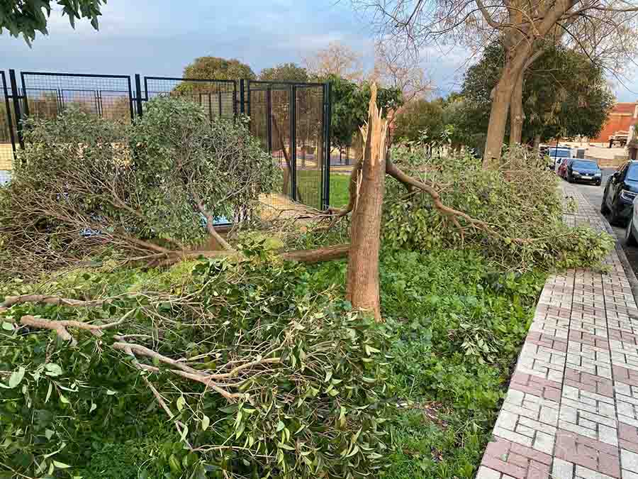 En la calle San Juan, en el centro urbano, se ha actuado en cornisas desprendidas en los tejados, prestando apoyo a los vecinos; los efectivos de Limpieza Viaria han hecho un trabajo excelente en la avenida principal, se ha trabajado sin parar a nivel de Jardinería, se han retirado ramas y árboles destrozados, como por ejemplo en la avenida Pau Casals, se han derrumbado tres torretas de electricidad en el colegio Isaac Peral, ha habido algunas incidencias con cables eléctricos y se ha caído el vallado perimetral de la pista polivalente de Torresol-Cortijos del Sol, cuyos daños están por cuantificar económicamente.