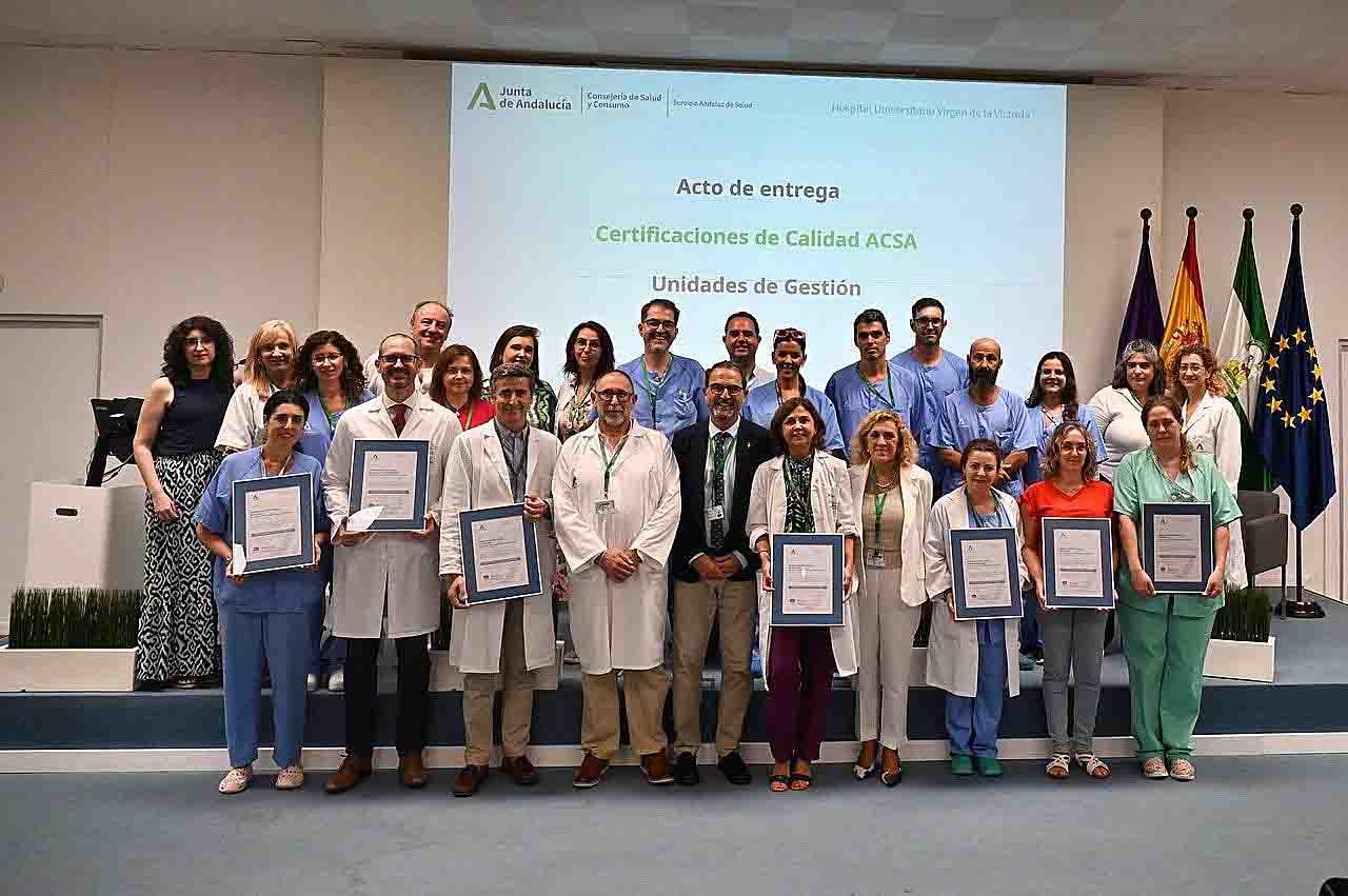 El complejo hospitalario universitario Virgen de la Victoria ha celebrado hoy el acto de entrega de certificaciones de calidad a seis de sus unidades asistenciales, tras superar con éxito el proceso de acreditación de la Agencia de Calidad Sanitaria de Andalucía (ACSA). Con esta nueva tanda de acreditaciones, el centro ha superado más de la mitad, en concreto el 62,5% de unidades, que cuentan actualmente con esta garantía de calidad certificada.