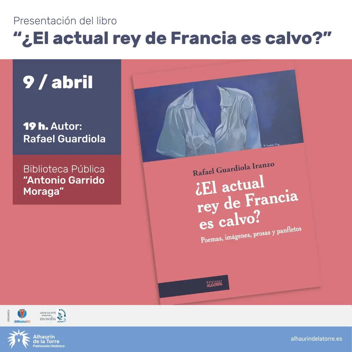 Compartimos tres de las próximas apuestas culturales en el CC Vicente Aleixandre y en La Biblioteca Pública «Antonio Garrido Moraga» de Alhaurín de la Torre: